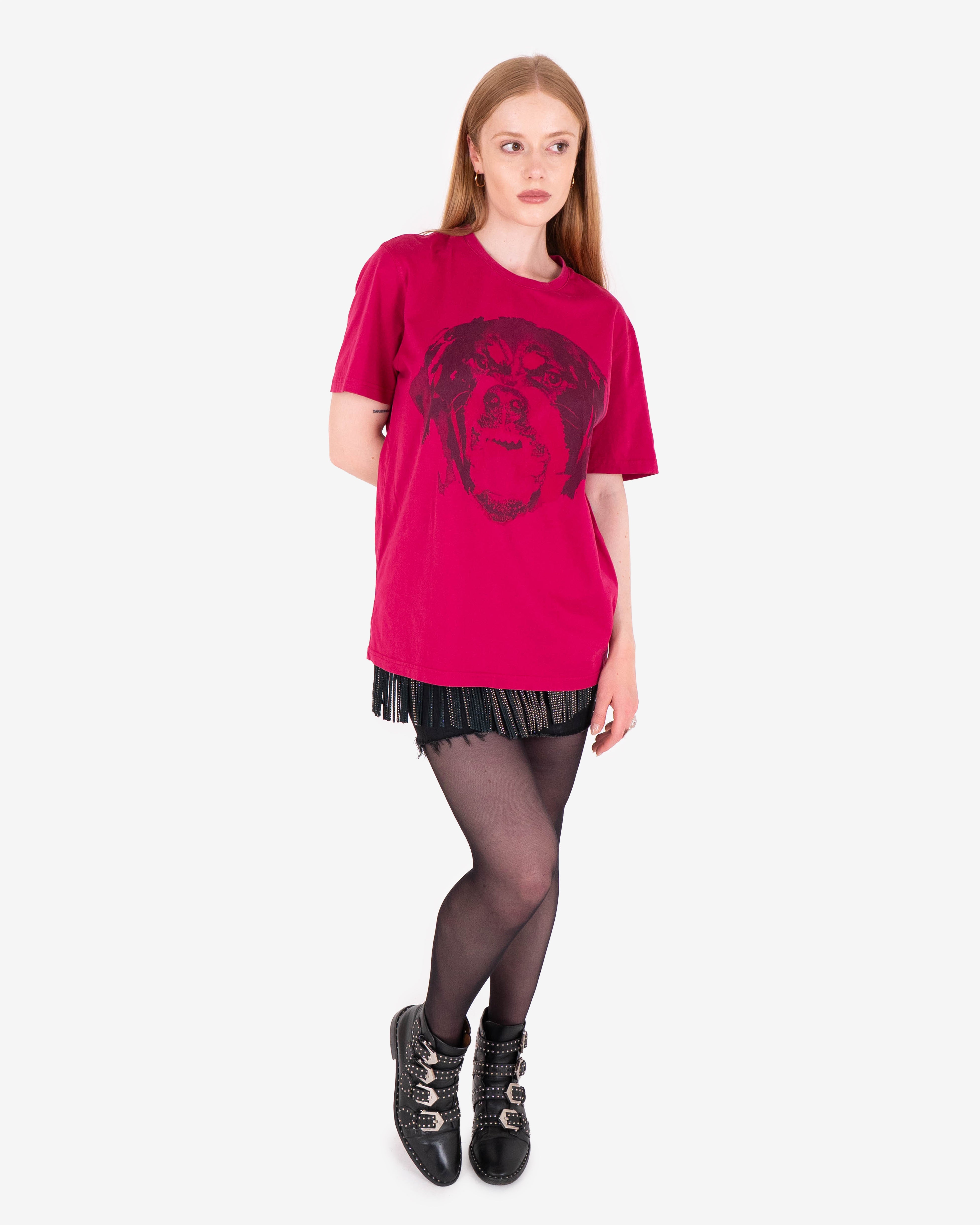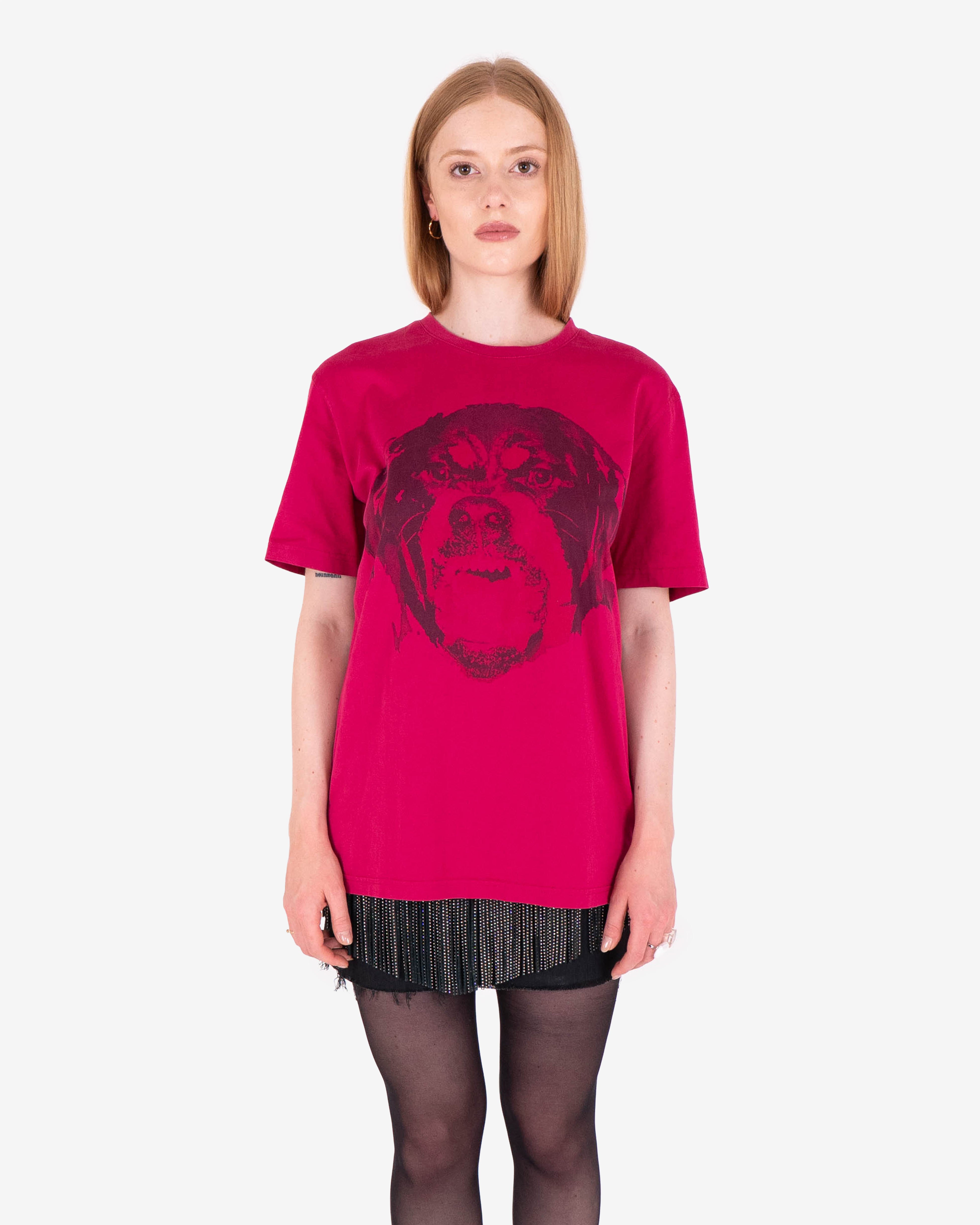 Unisex -shirt with Tisci's signature animal designs for Givenchy, featuring a large Rottweiler printed across front chest.