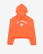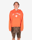 Souvenir style oversize cut hoodie featuring St. Moritz flag logo printed on chest.