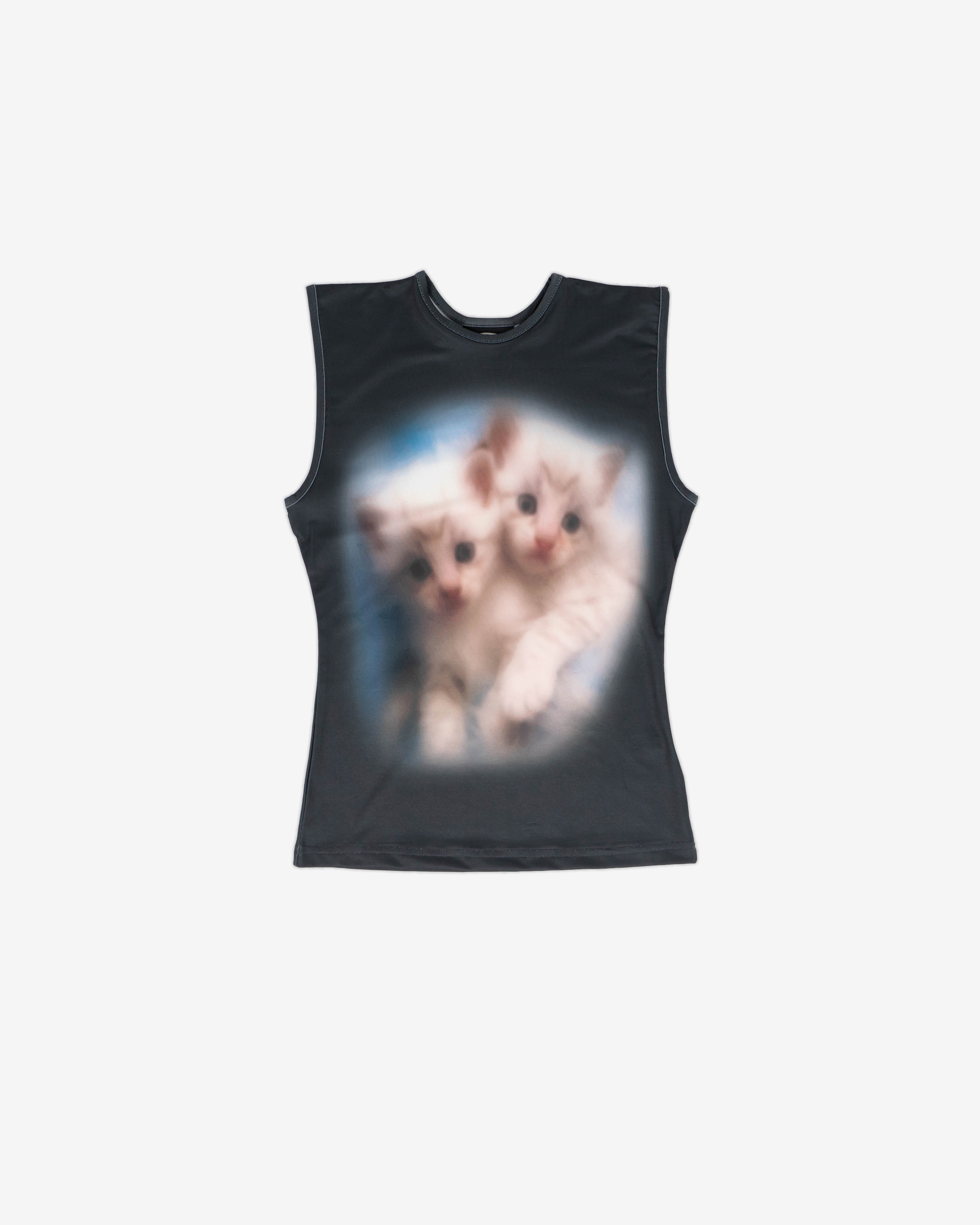 Airbrush style graphic print featuring two kittens on a tank-style sleeveless top.