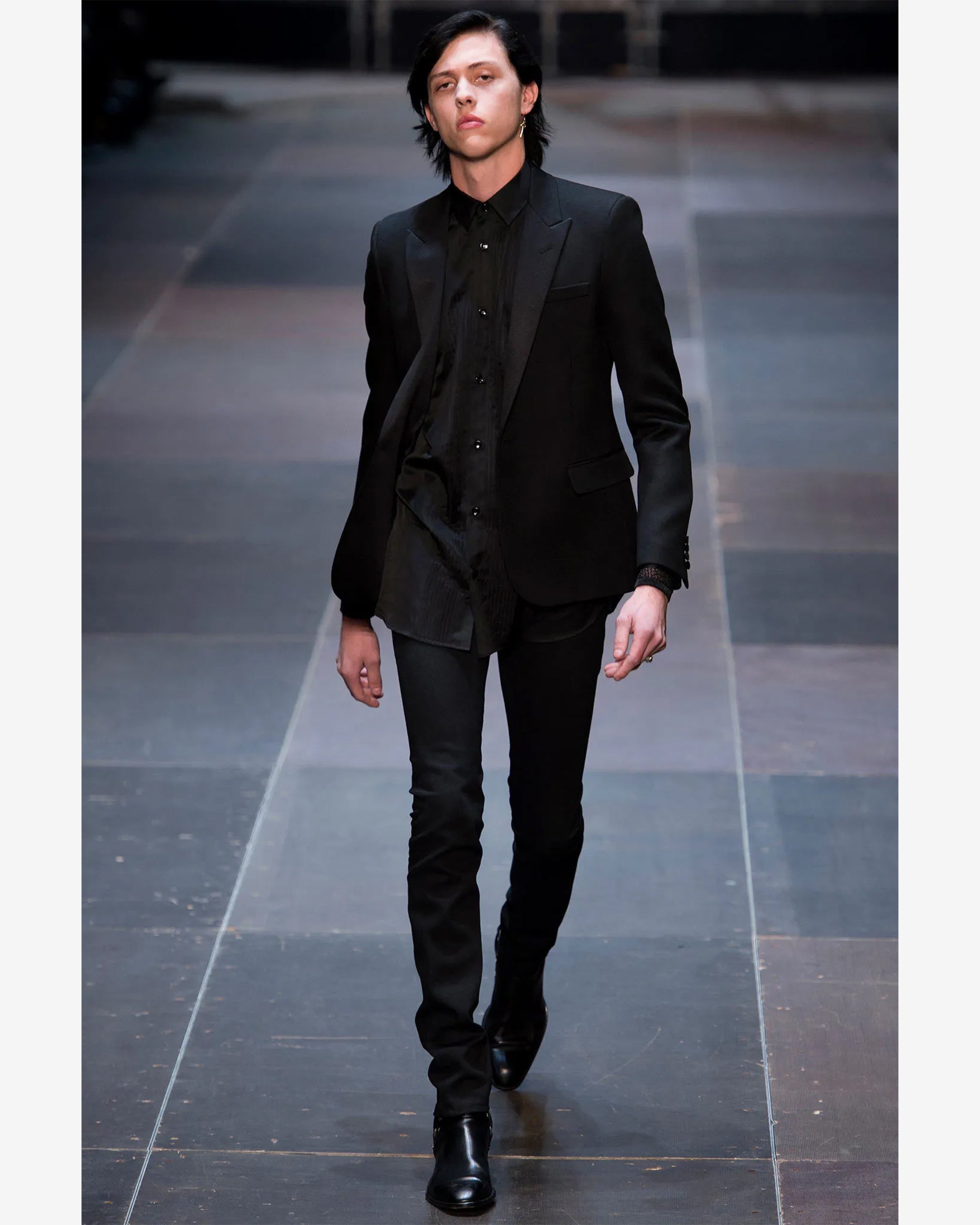 When Hedi Slimane became creative director of Saint Laurent in 2012, he revived Le Smoking bringing it into the 21st century with his own aesthetic. He debuted this piece as the opening look of his first Saint Laurent show in Paris for Spring/Summer 2013, and it has remained a wardrobe essential ever since.