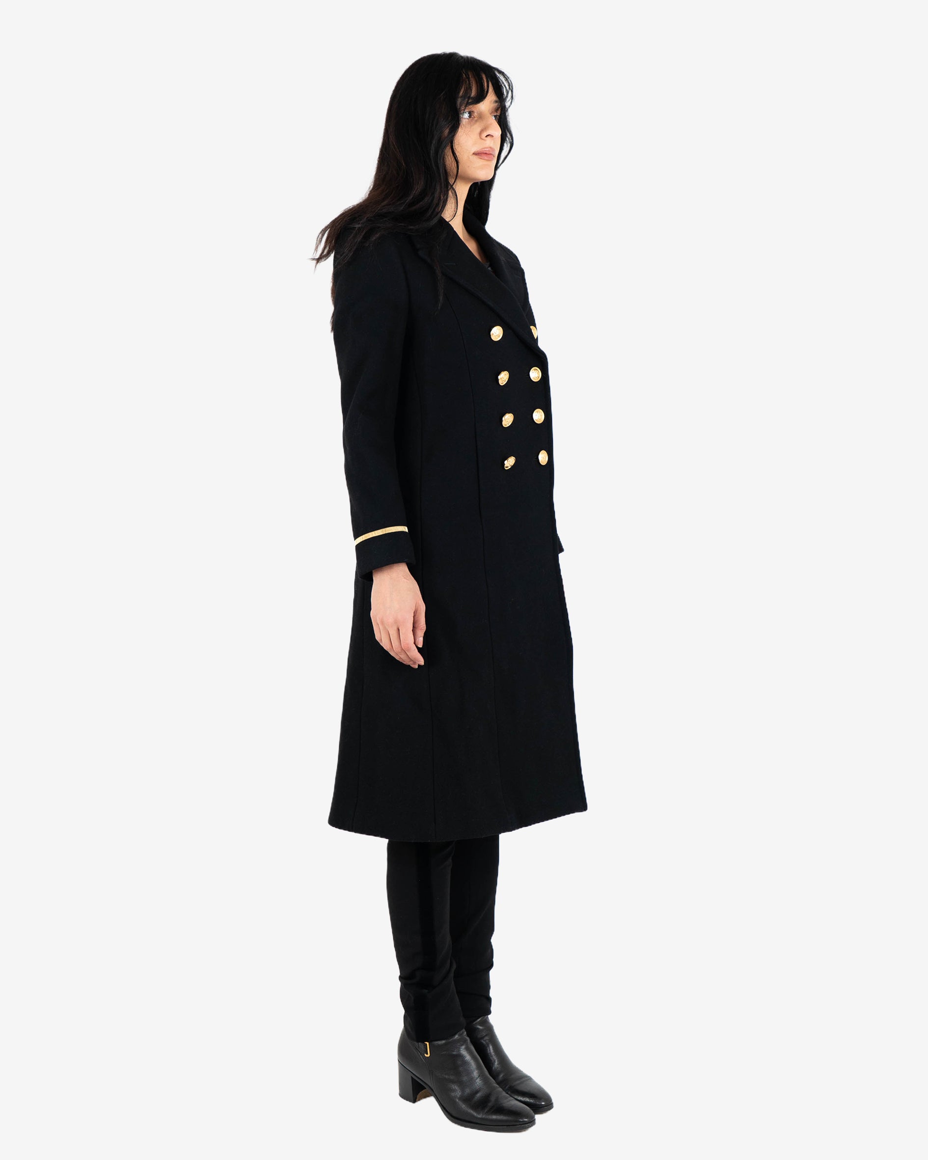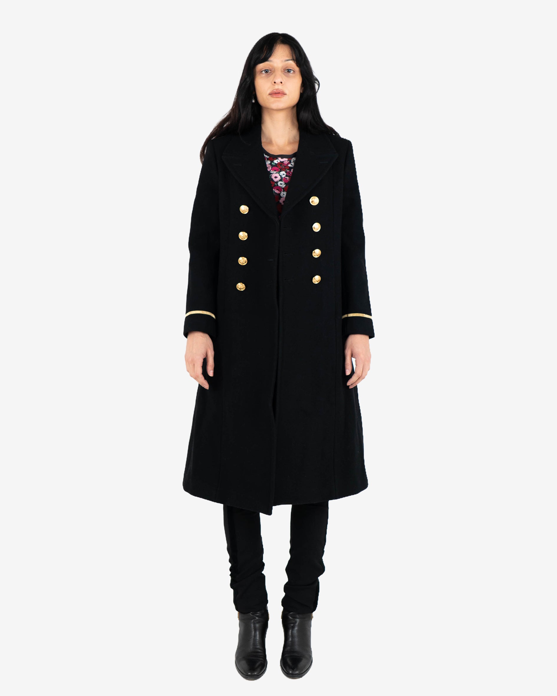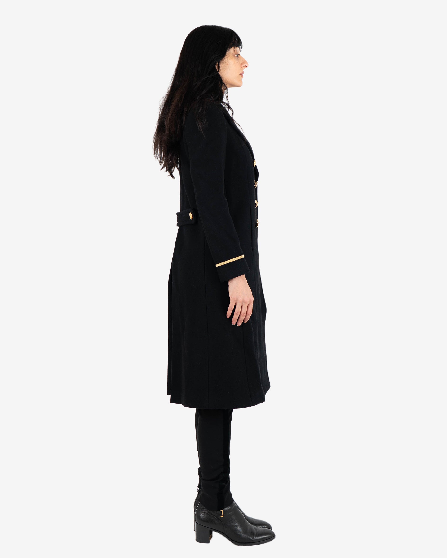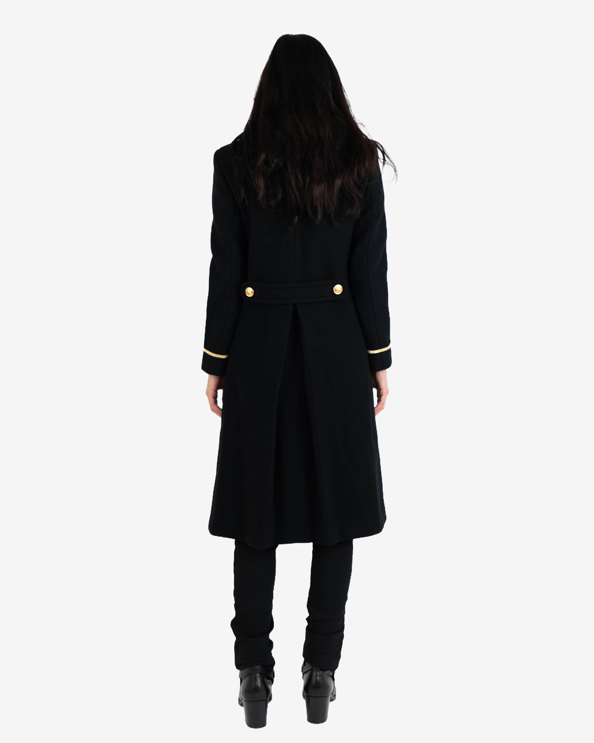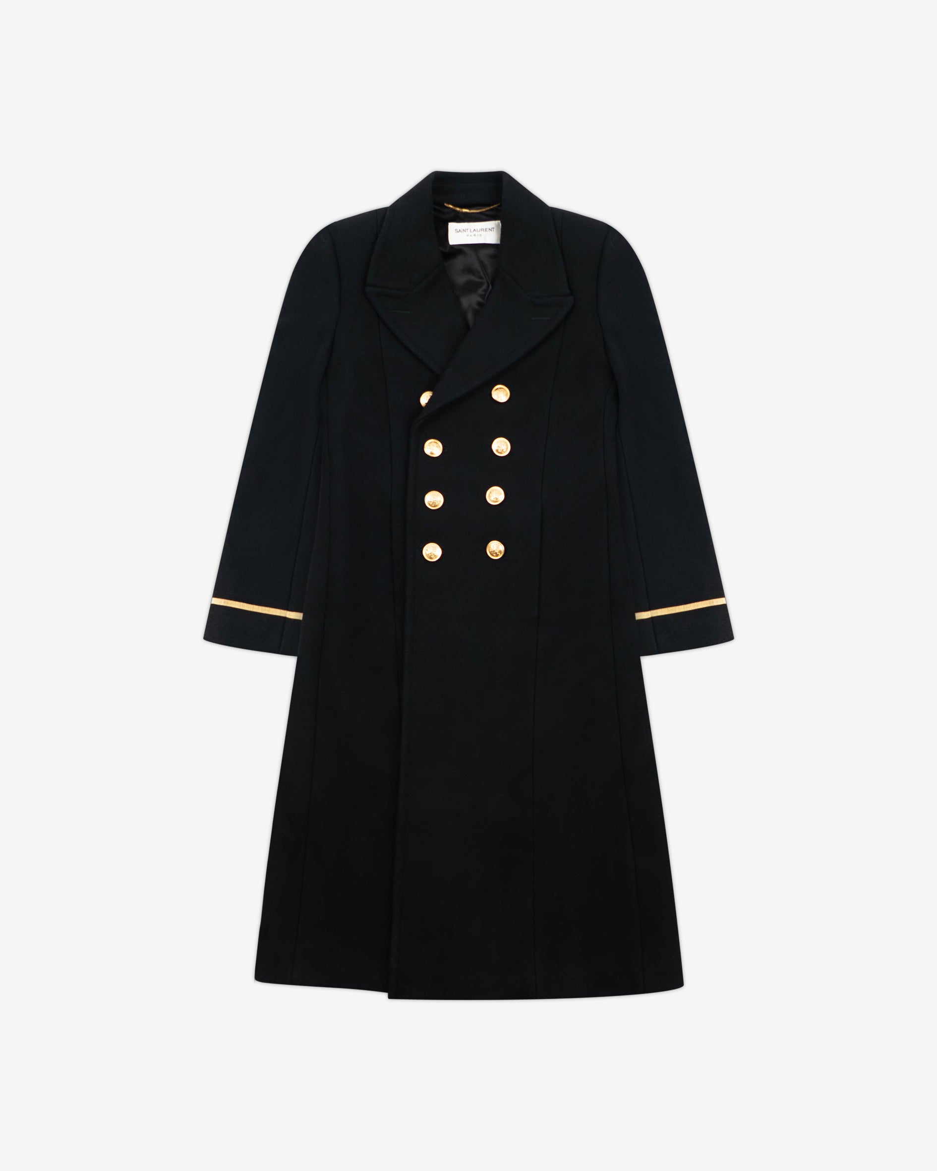 The final collection of Hedi Slimane for Saint Laurent Paris featured some of the most beautiful military-inspired garments of his career. This coat comes in a thick, high-quality wool-nylon base and absolutely stunning golden military details and cuff embroidery. As seen on the runway.