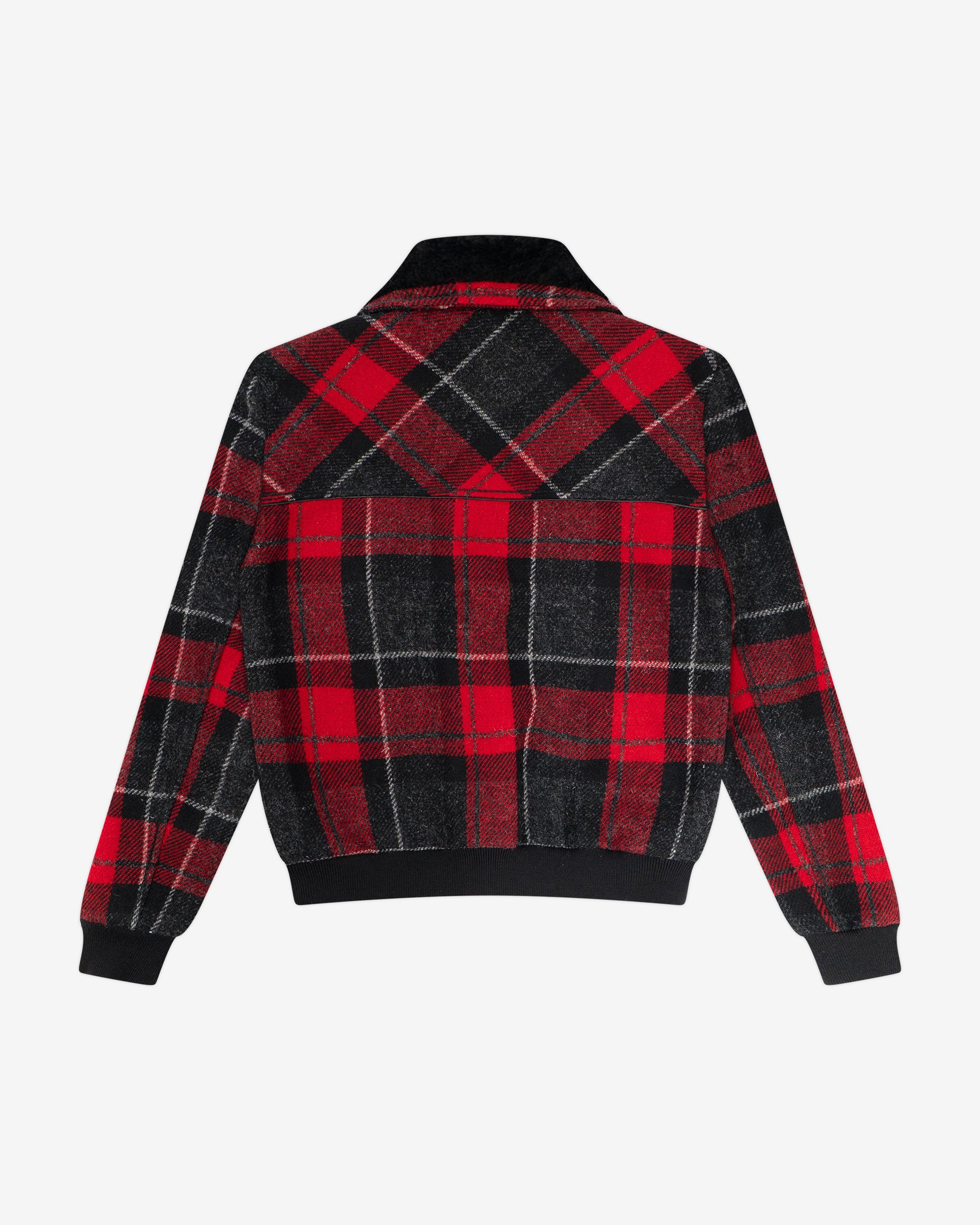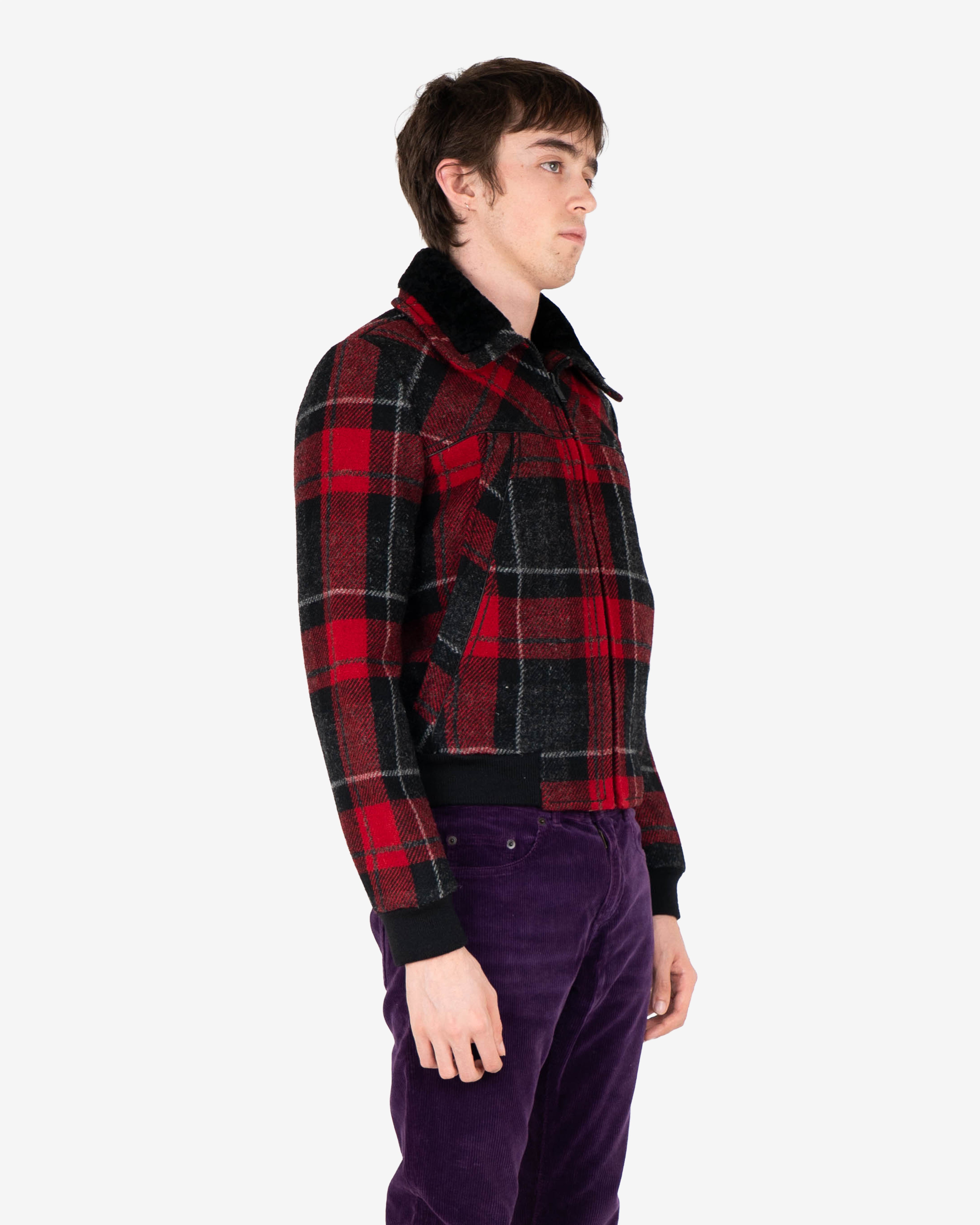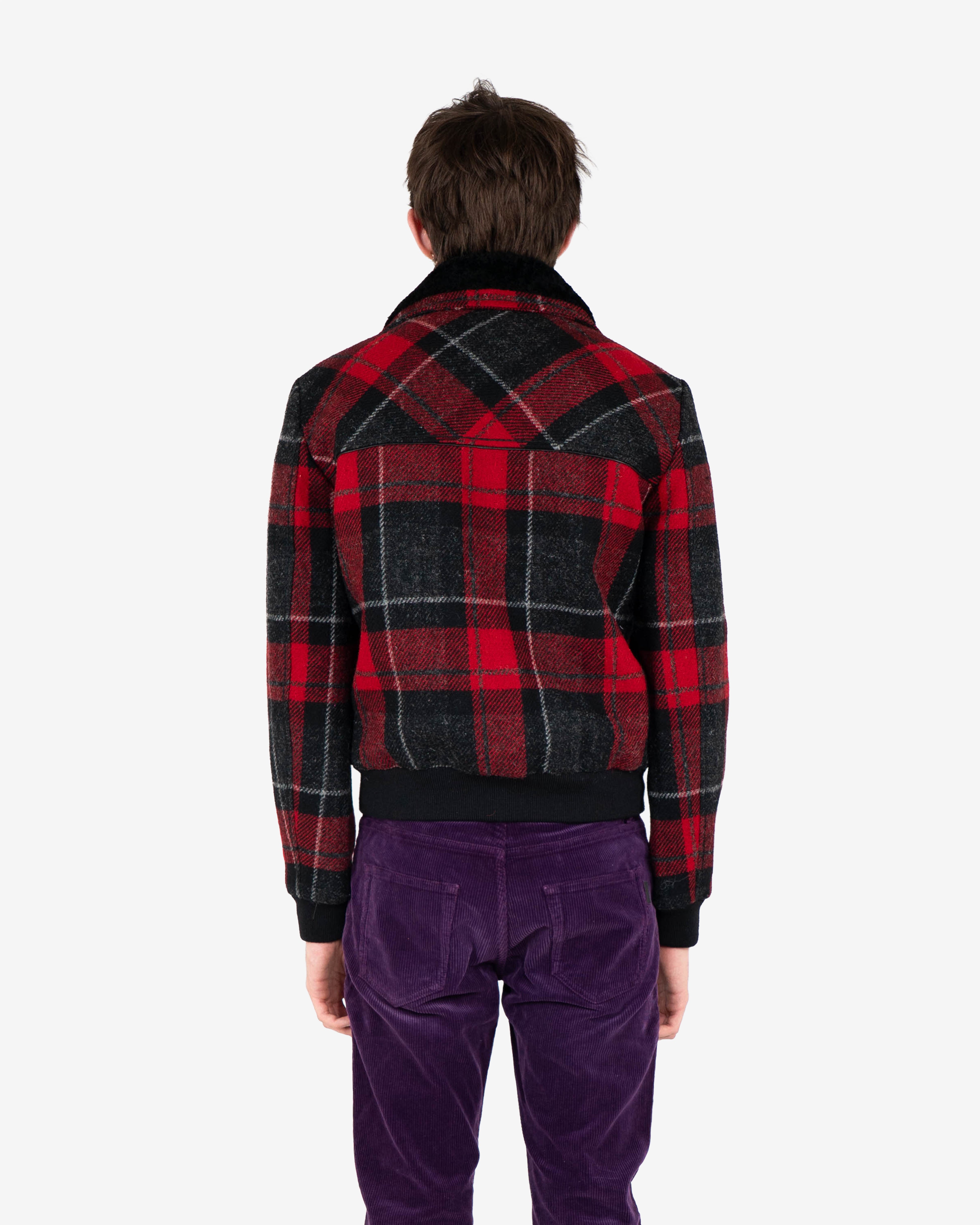Stunning yet classic plaid wool checked jacket featuring contrast cuffs and collar and a shearling neck.