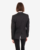 Stunning crocodile print waxed smoking jacket featuring side pockets, blazer lapels and button closure.