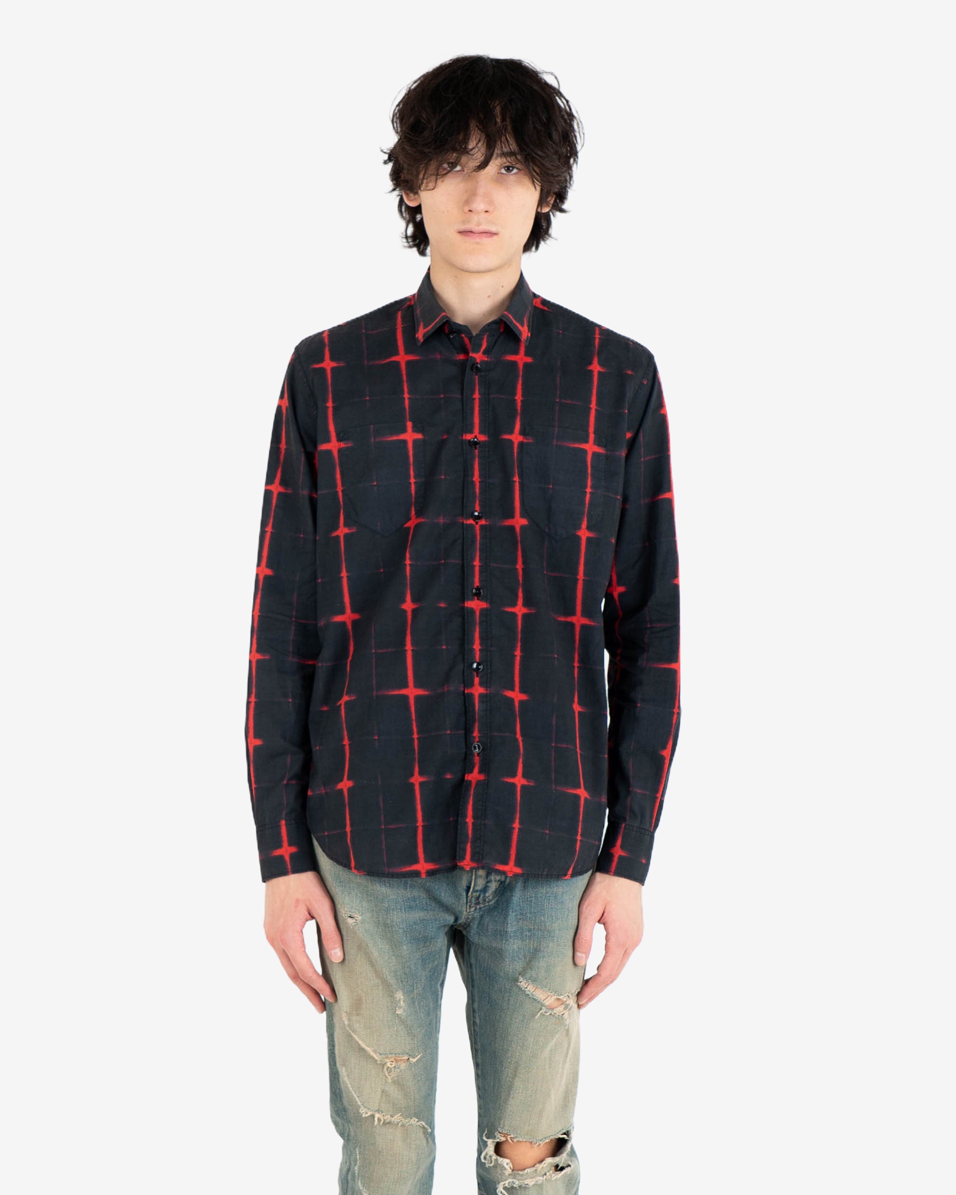 Red & Black Cotton Button Up Shirt