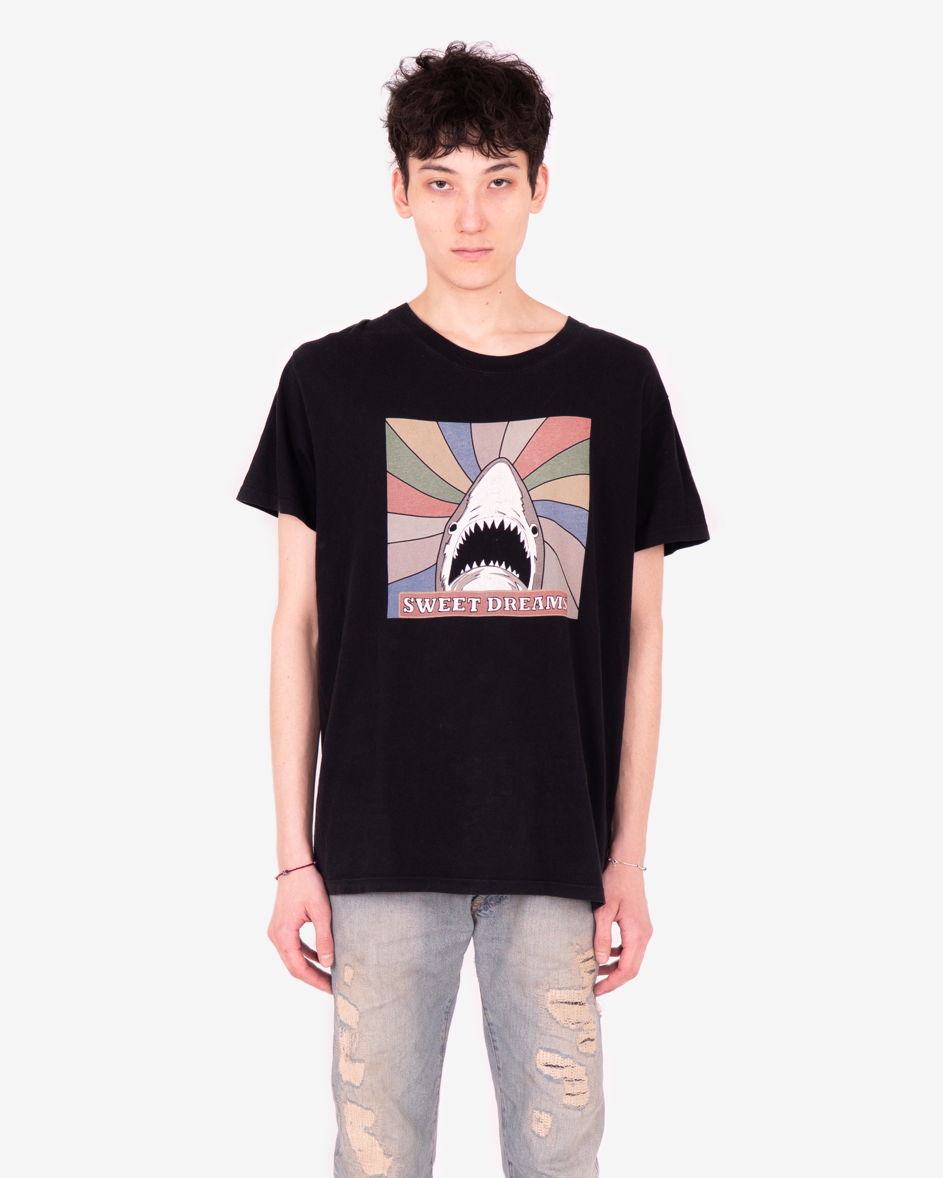 Sweet Dreams graphic chest print on black cotton t-shirt.