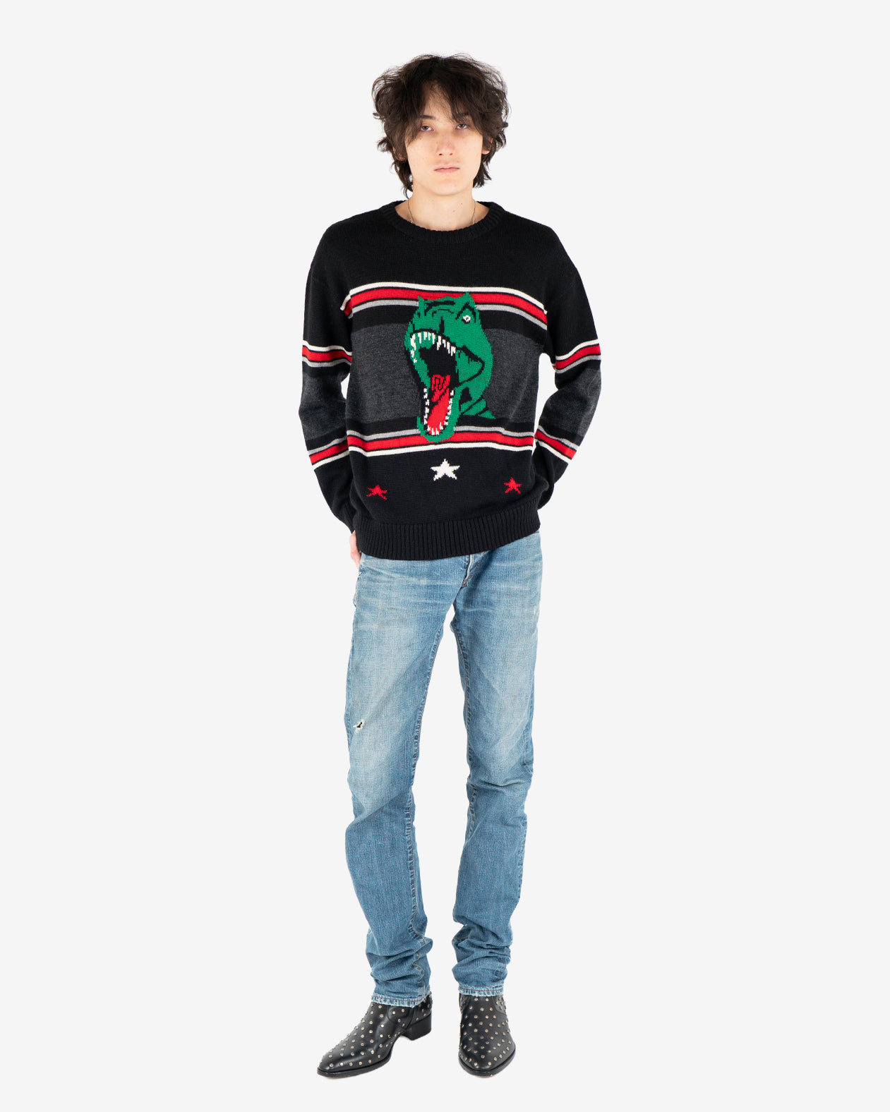Iconic T-rex graphic on wool sweater