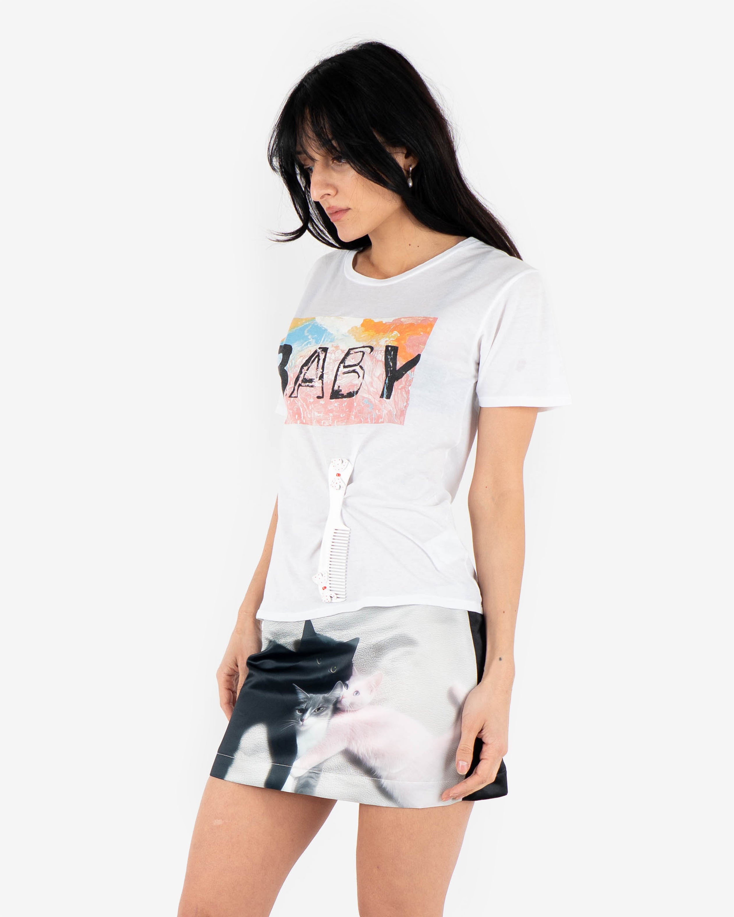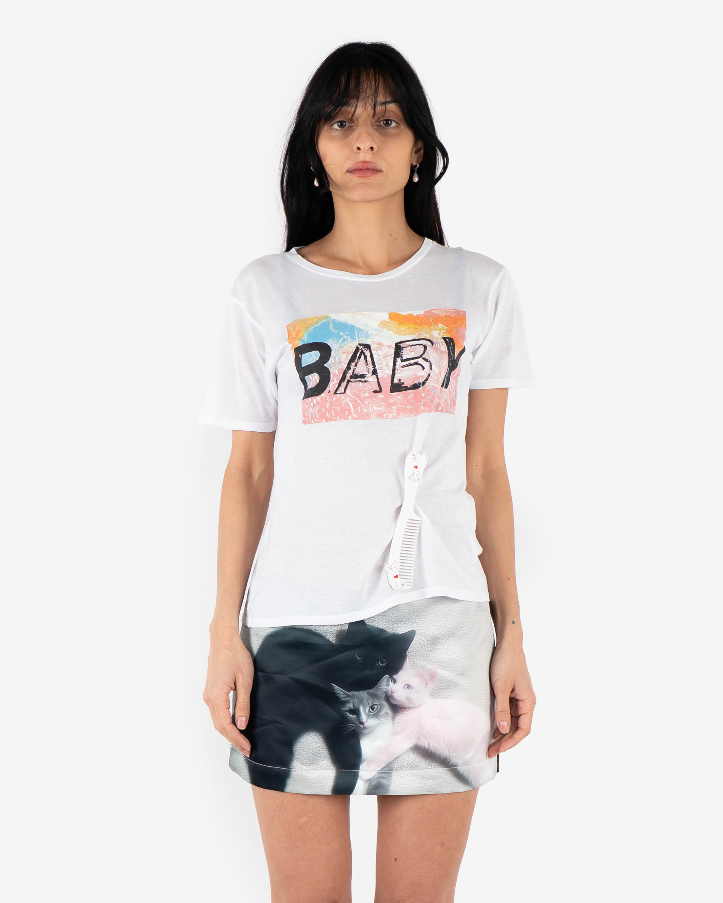T-shirt with "BABY" graphic by Lucia Santina Ribisi.