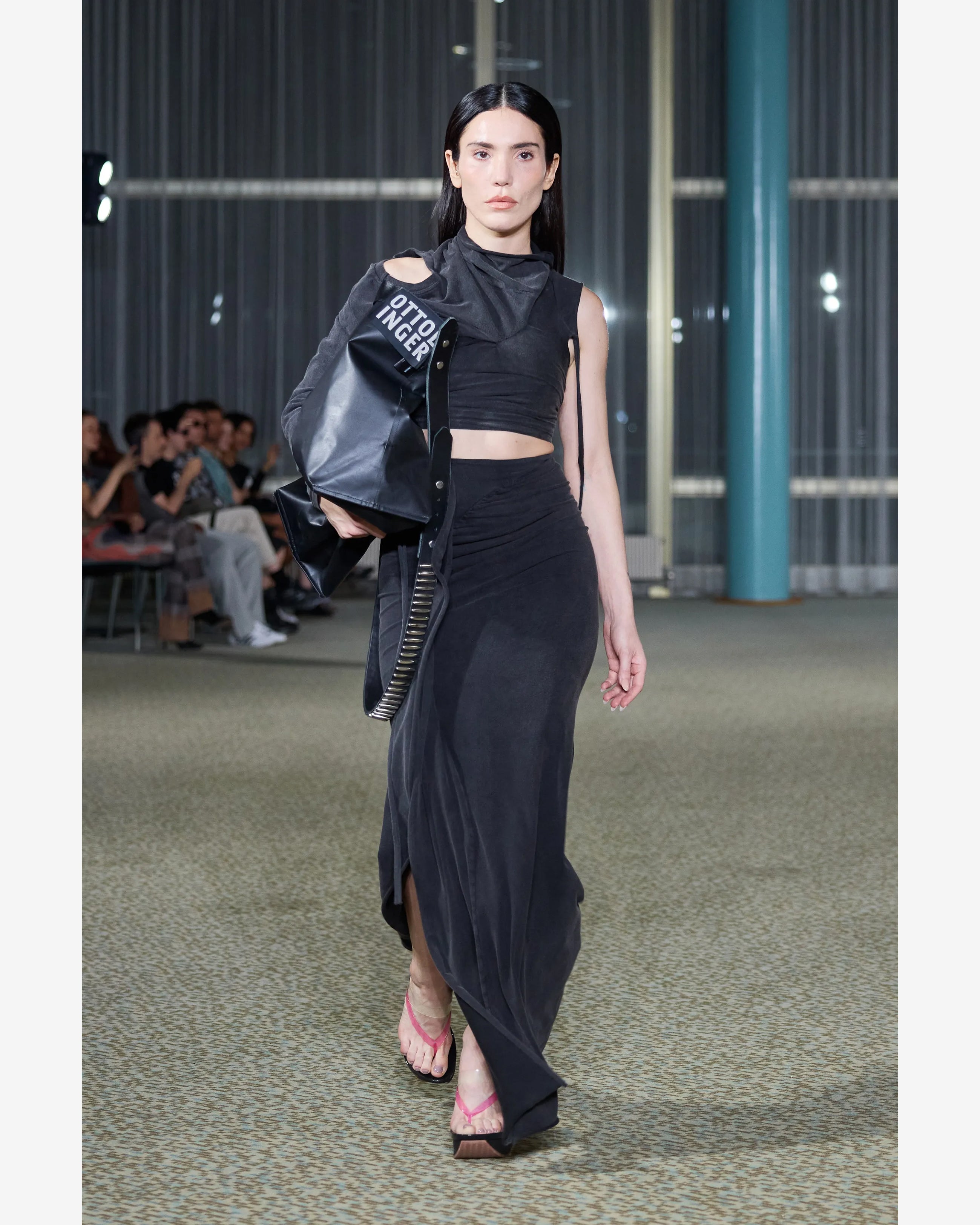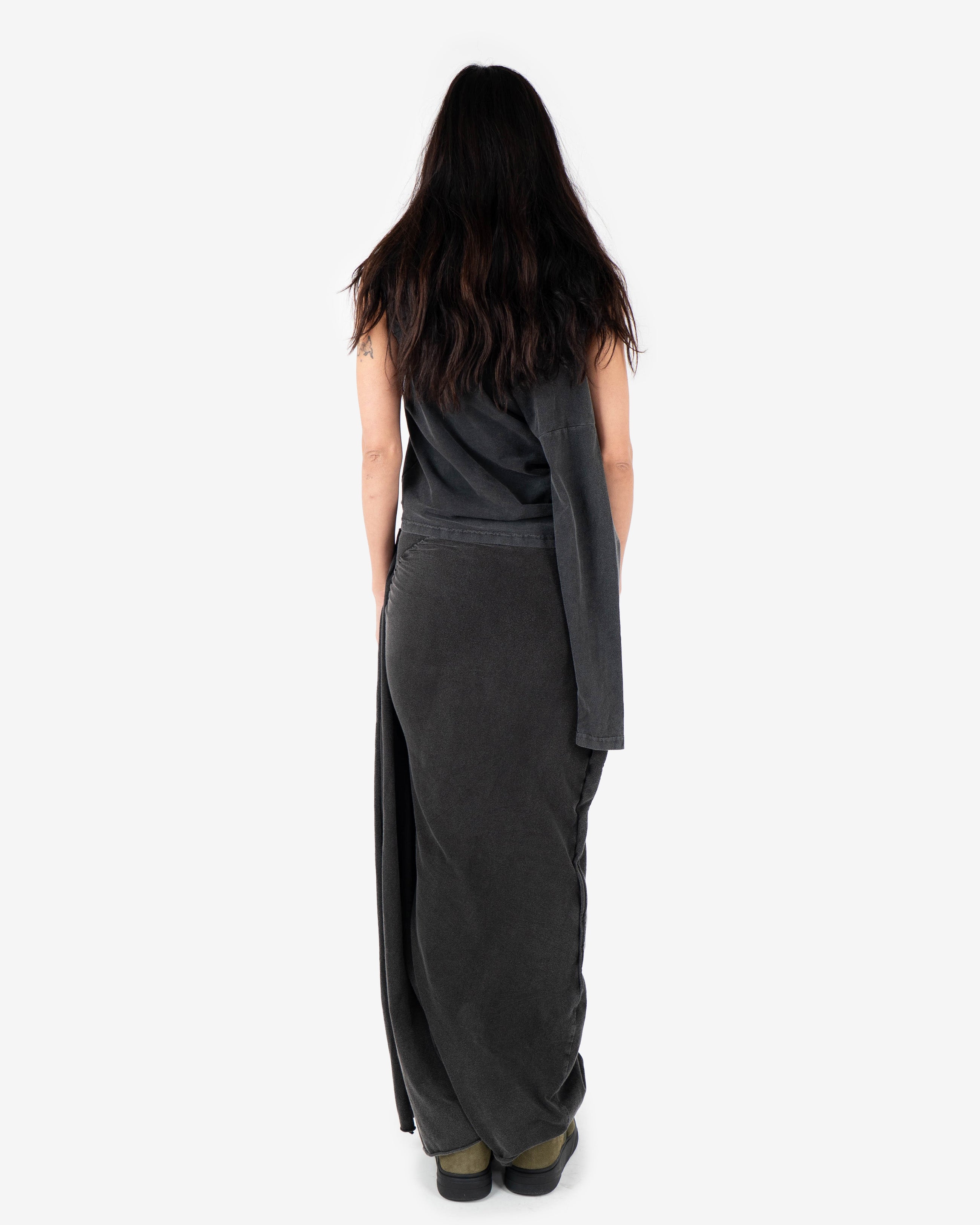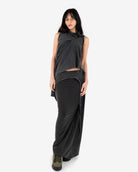 Organic cotton top featuring a draped silhouette, asymmetric cutout sleeve and scarf-style neckline.