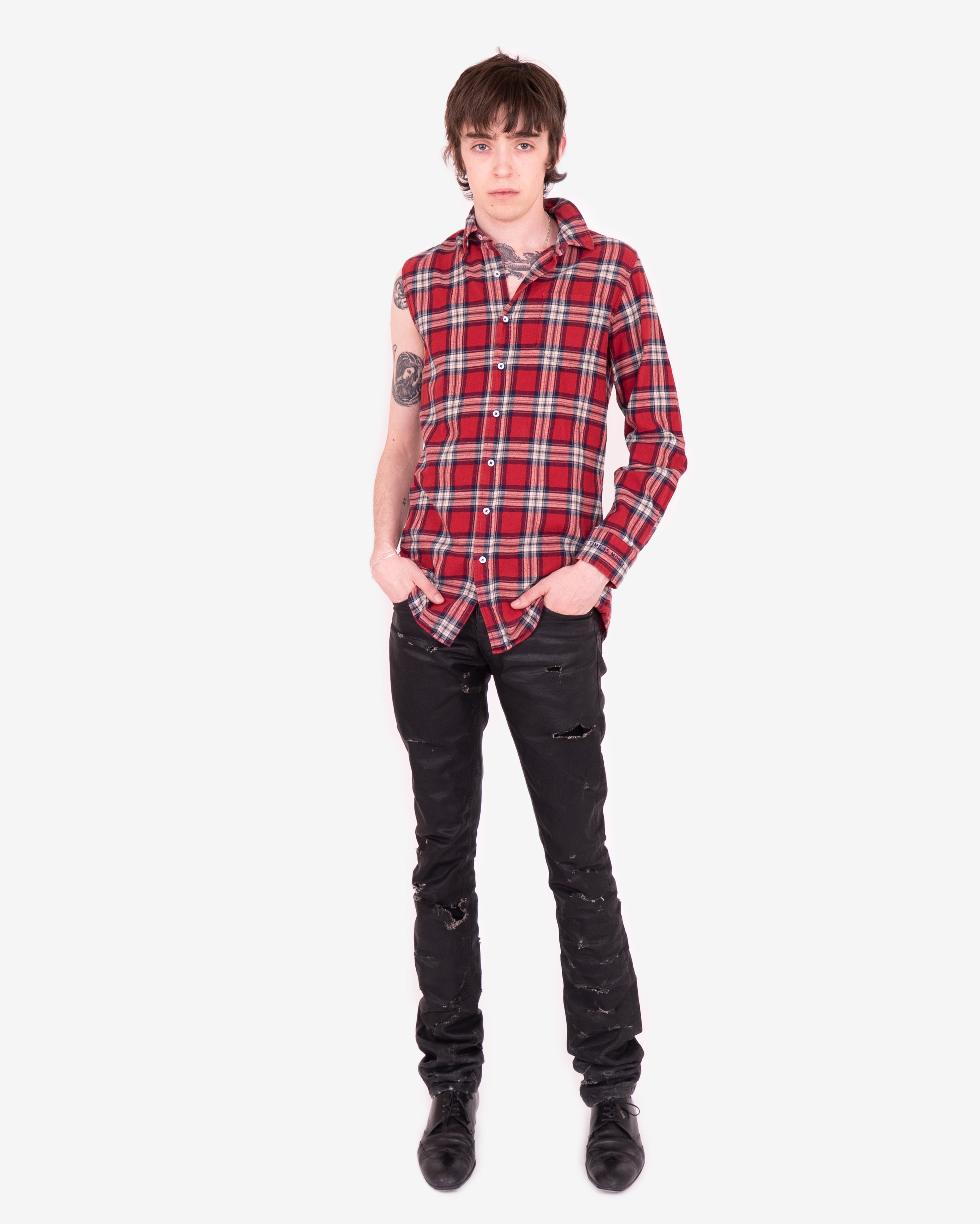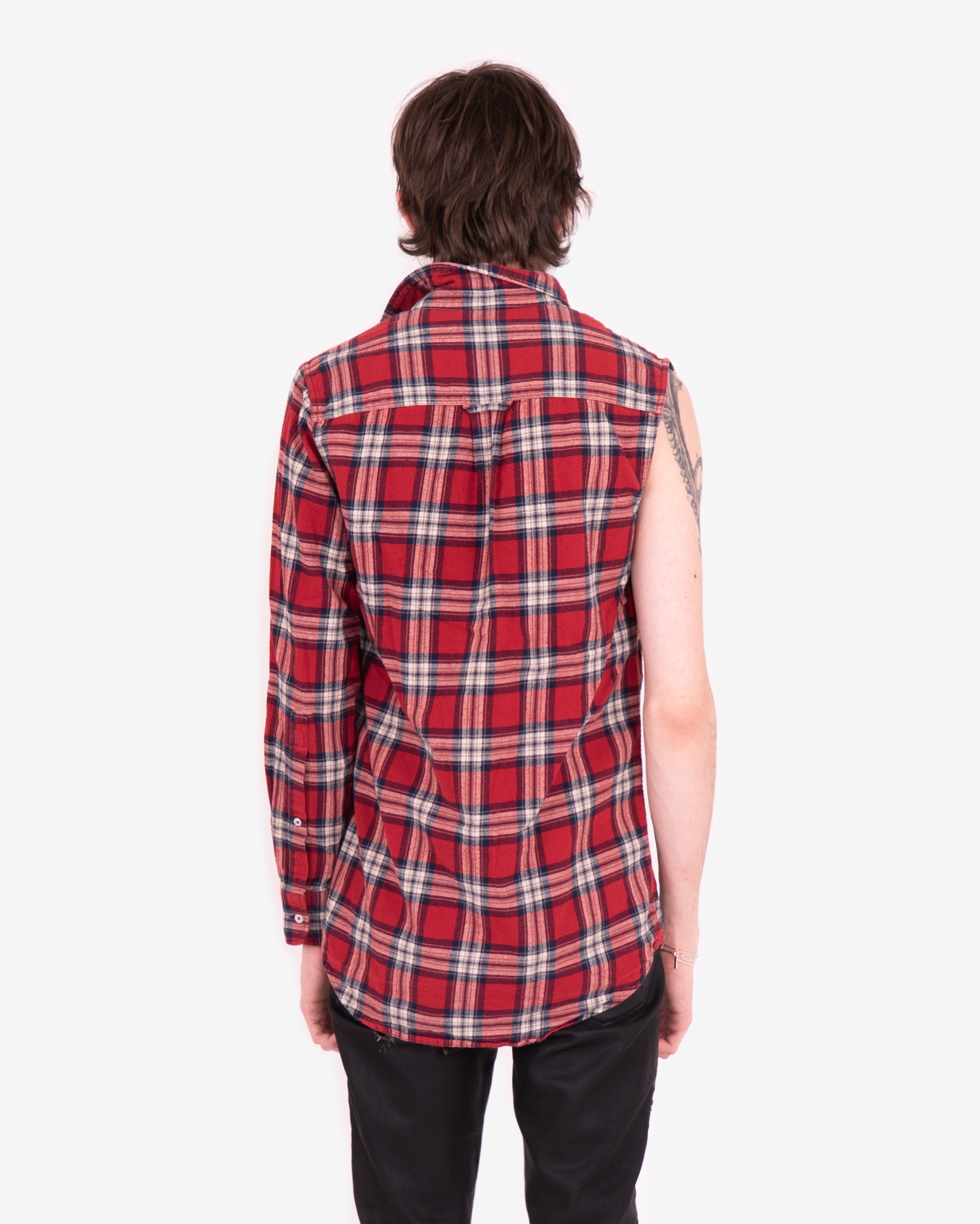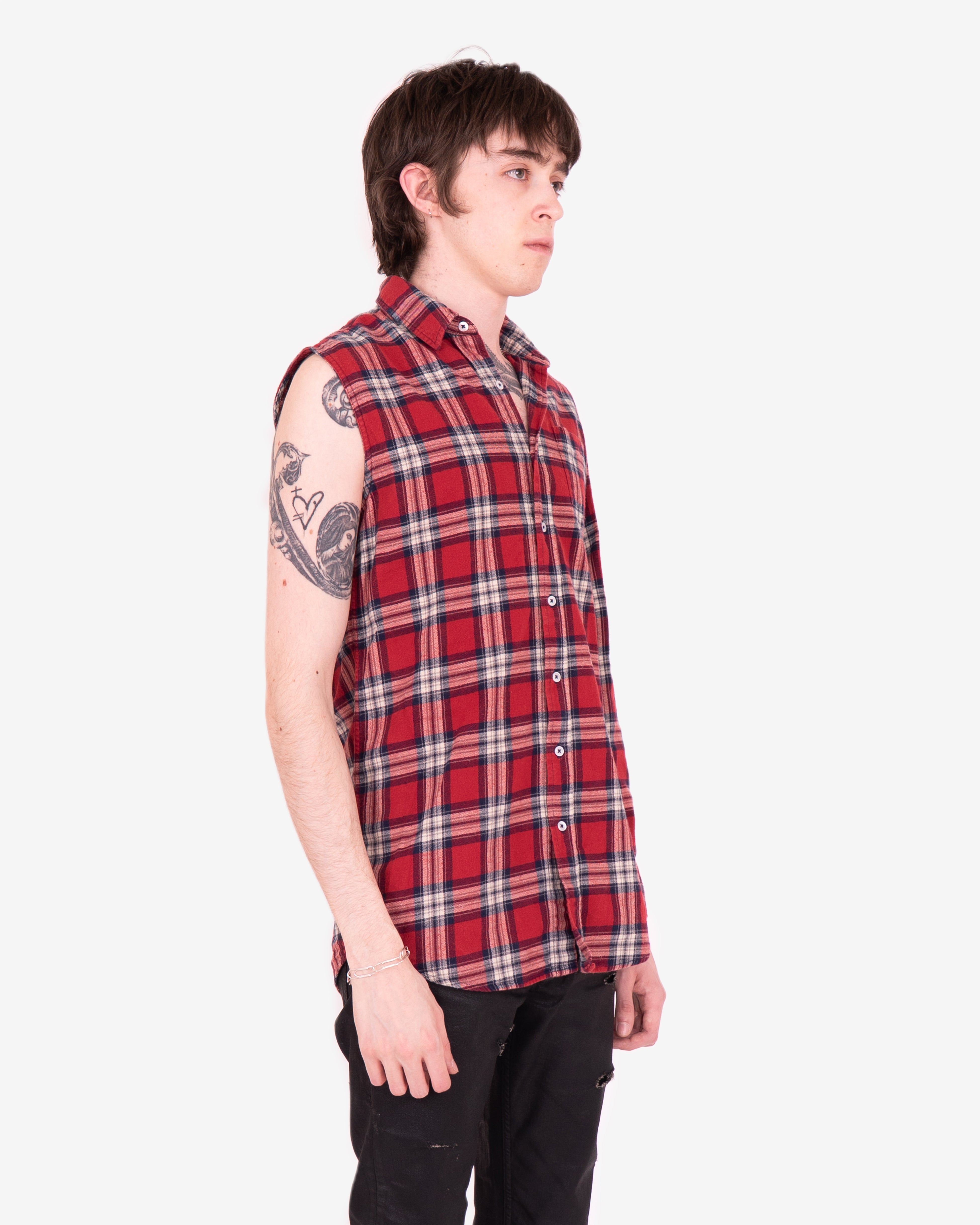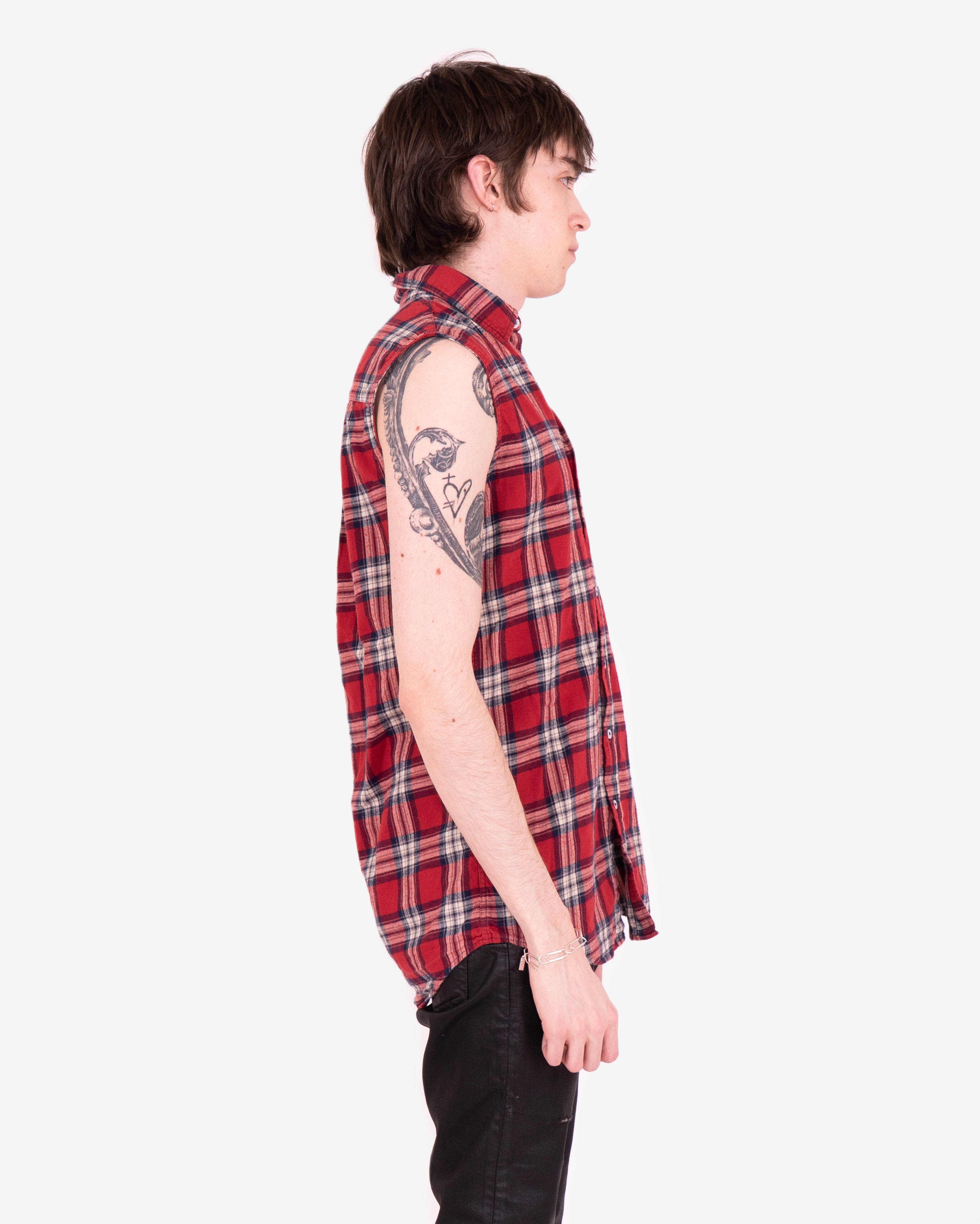 This checkered shirt features a half sleeveless construction and a thick cotton blend