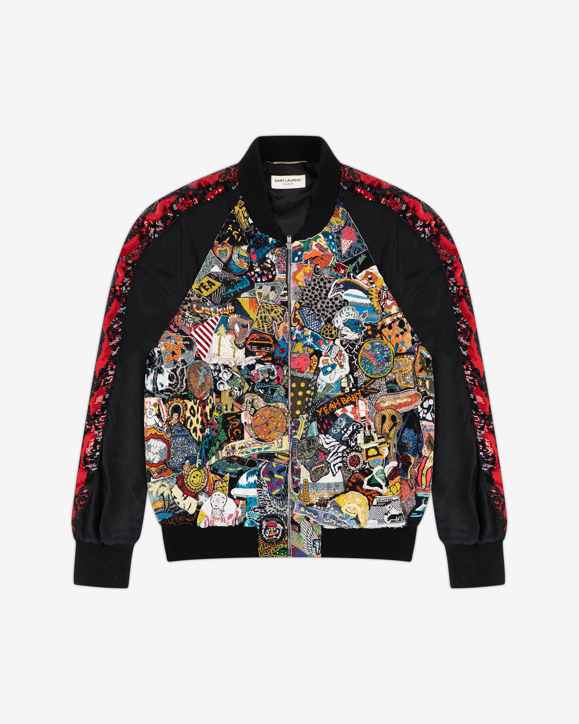 With it’s haute couture like construction of a handmade patchwork embroidery of beads, sequin sleeves, a leopard silk back and a 34.000,00 USD retail price, this jacket holds it’s place up as one of the most valuable pieces of hedi slimane’s saint laurent.